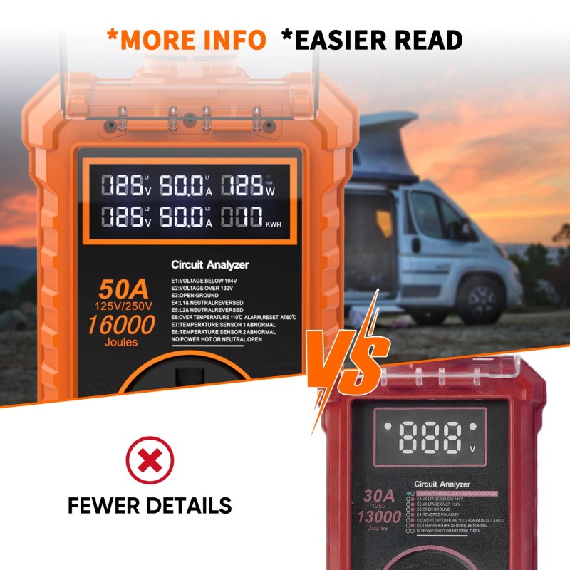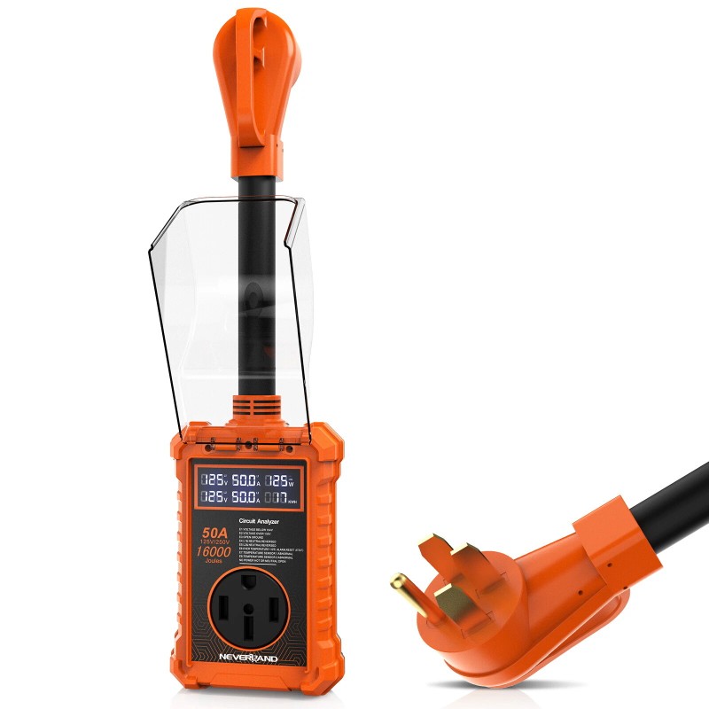 Neverland RV Surge Protector 50A IP67 6 in1 RV Circuit Analyzer 16000J + LED Display Light
