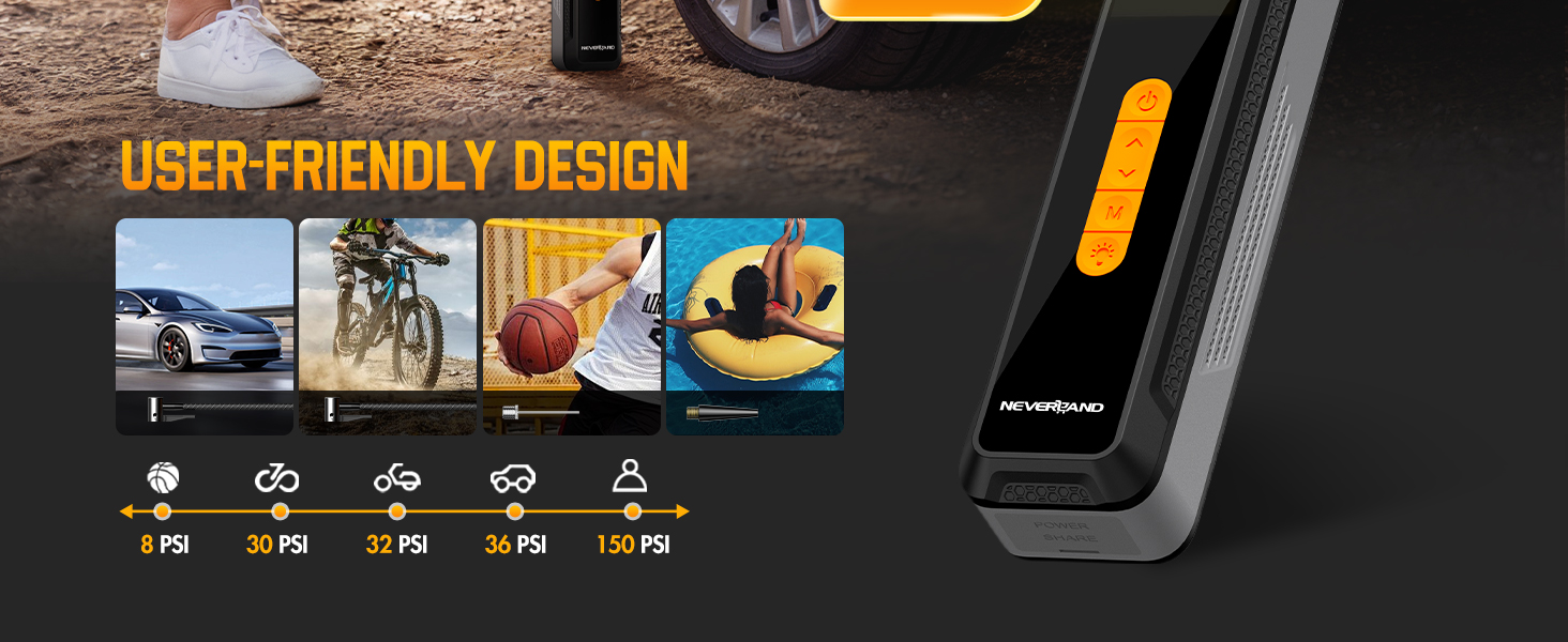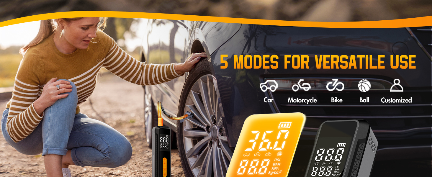 A4: NEVERLAND tire inflator portable air compressor comes with different nozzles. When inflating different objects, you can choose the corresponding nozzle and mode for inflation.