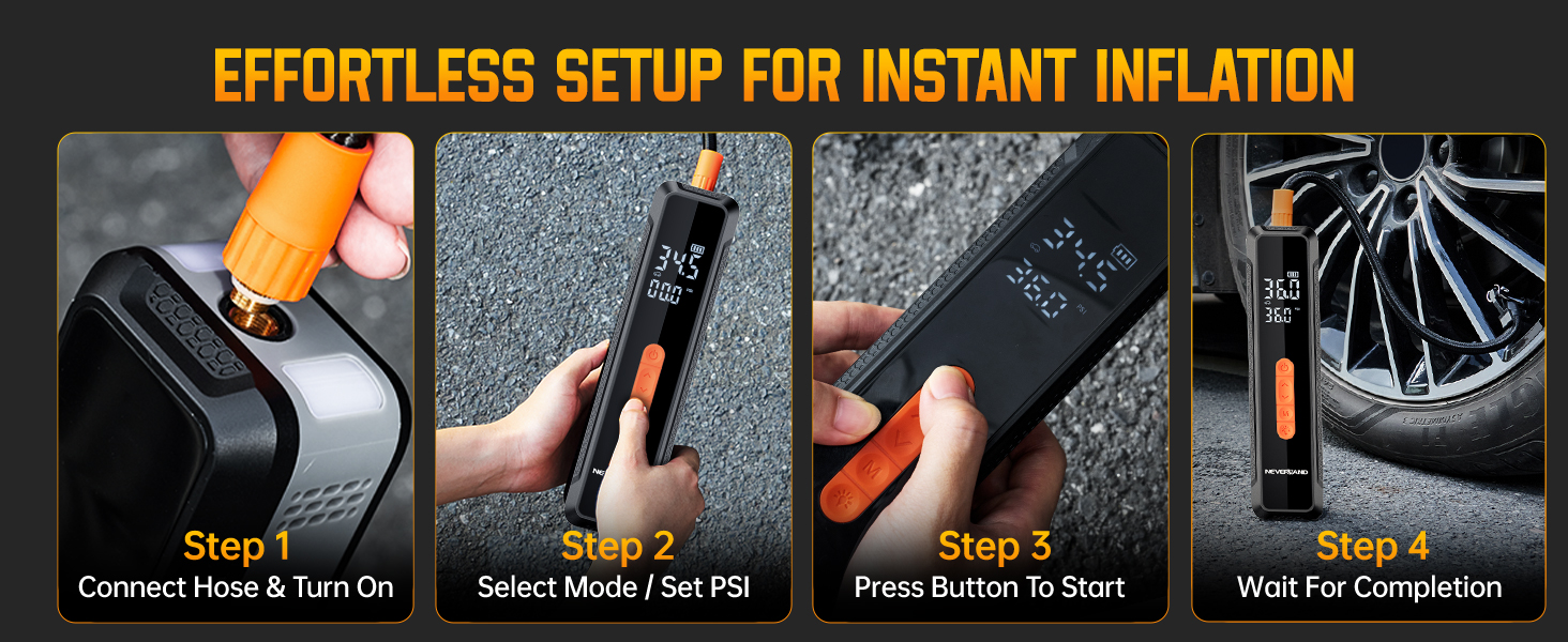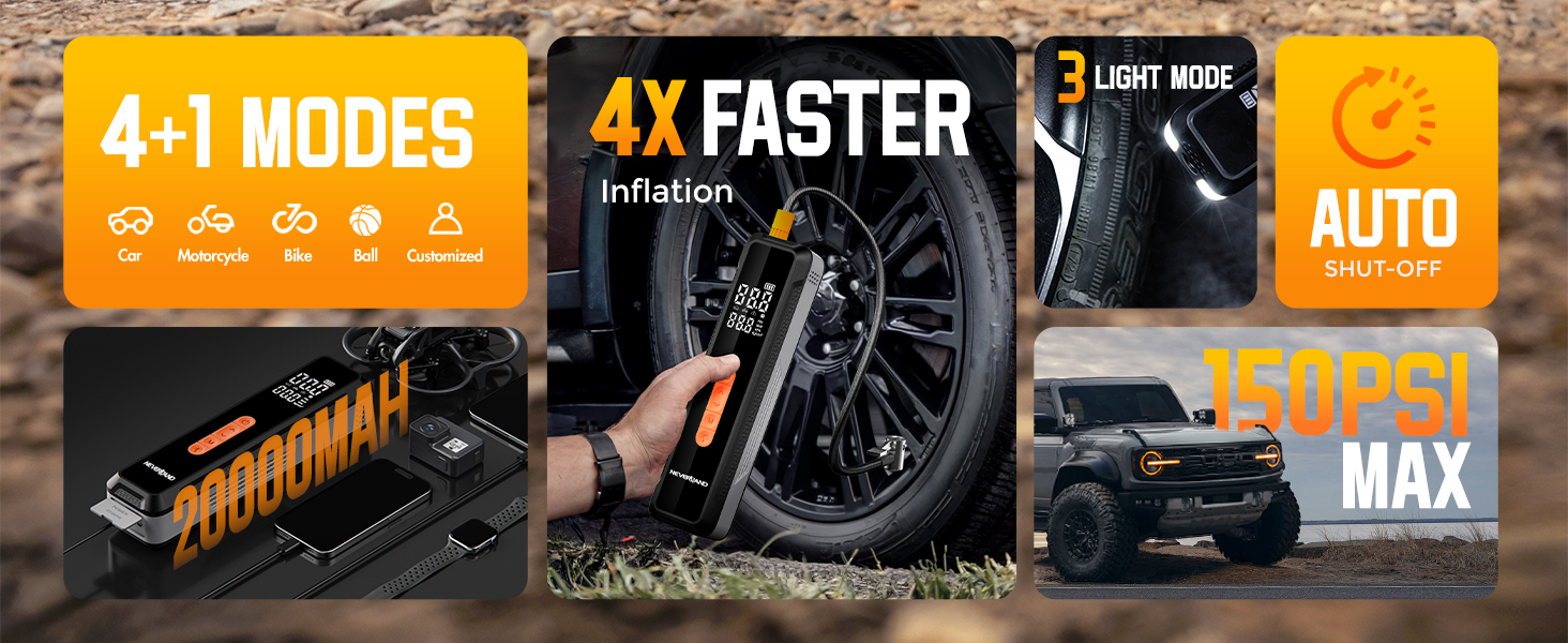 A3: Our Neverland portable tire pump for car will automatically shut down when it reaches the preset pressure value.