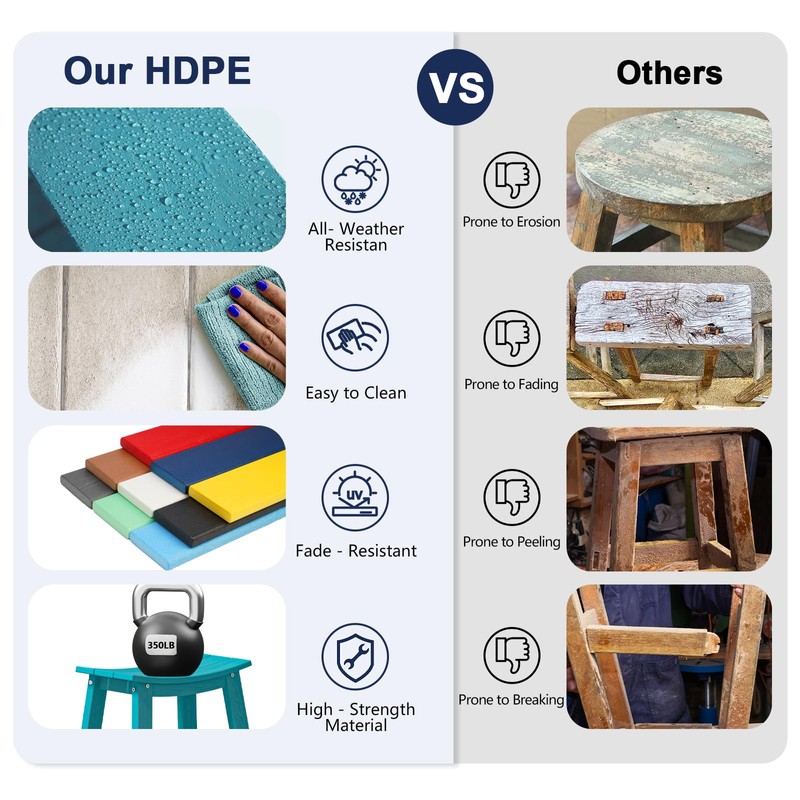 - 🐳 Wood-Look Finish, Zero Maintenance:Get the timeless charm of wood without the hassle. This HDPE stool resists cracking, splintering, and fading—even in harsh weather. No painting or sealing required—just a simple wipe-down keeps it looking like new.
