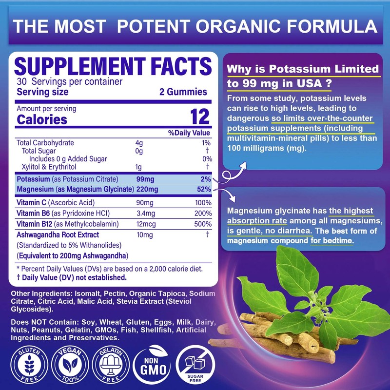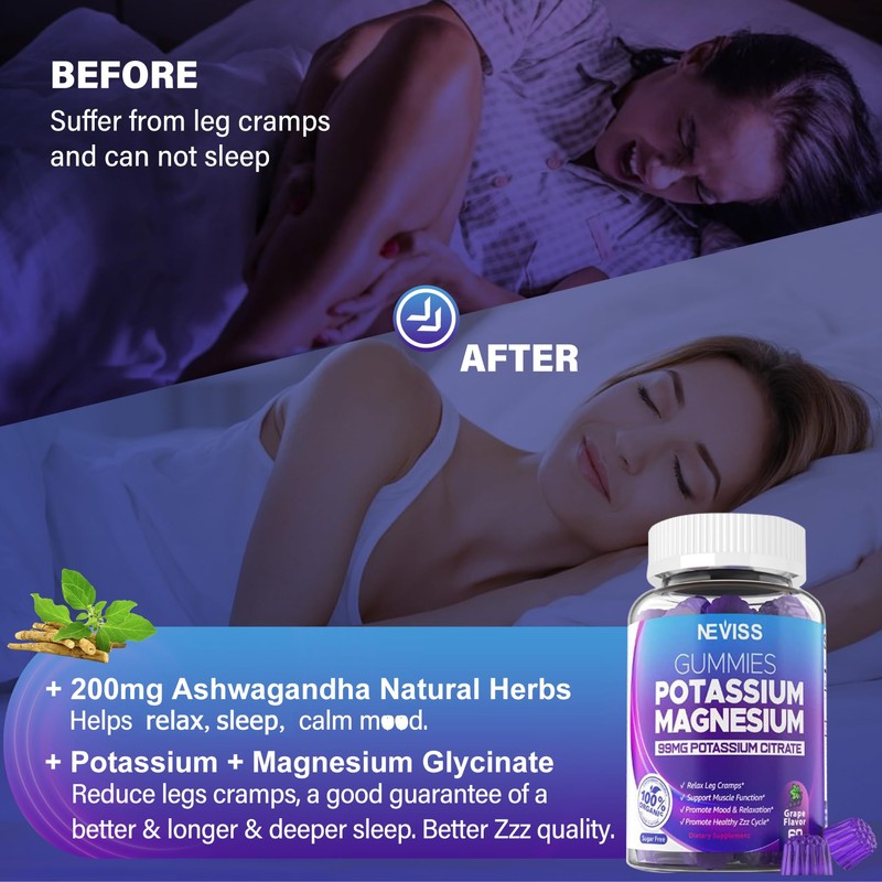 NEVISS 2Pack Potassium Magnesium + 2Pack Vitamin ADK with B12 Gummies