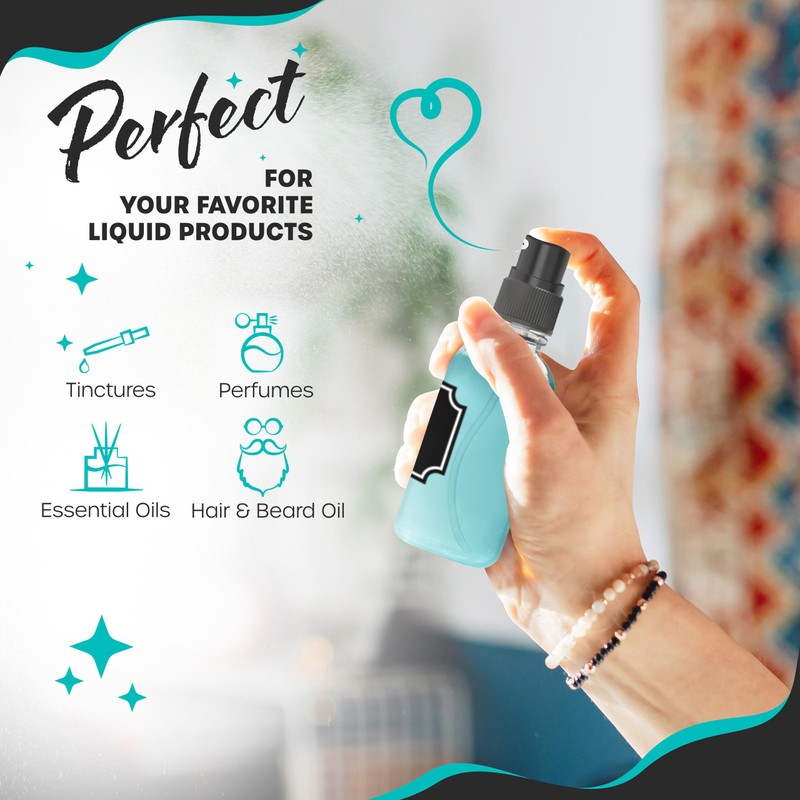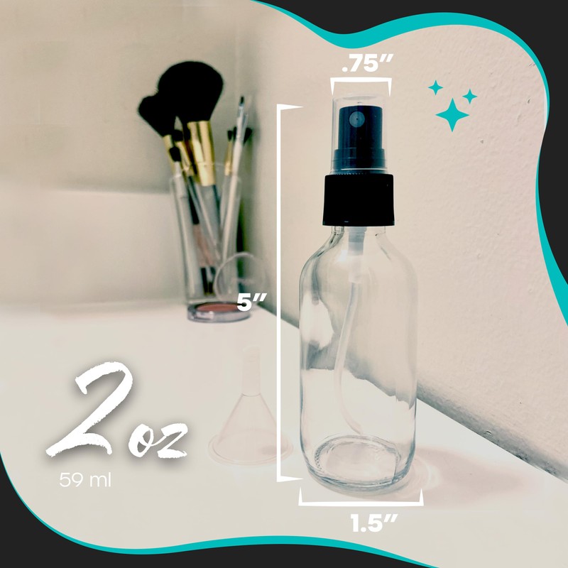 - Portable & Convenient Spritz Bottle : Never leave behind your favorite oils & cosmetics w/ these travel-friendly spray bottles small . These 2 oz glass spray bottles for cleaning are also perfect as a cologne bottle , glass plant mister , coffee bean spritzer , empty spray bottles for hair , & other toiletries. Easily slip the little spray bottles into your pocket or purse for on-the-go use on your face, body, & hair. These 2 oz spray bottles mist sprayer sets are your go-to mobile bottles.