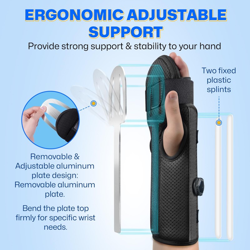 - Detachable Aluminum Plate – The hand wrist brace features a lightweight, detachable aluminum plate for support. Bend the plate top firmly for specific wrist needs. Ensures flexibility for daily activities. Ergonomic design keeps fingers and wrists relaxed