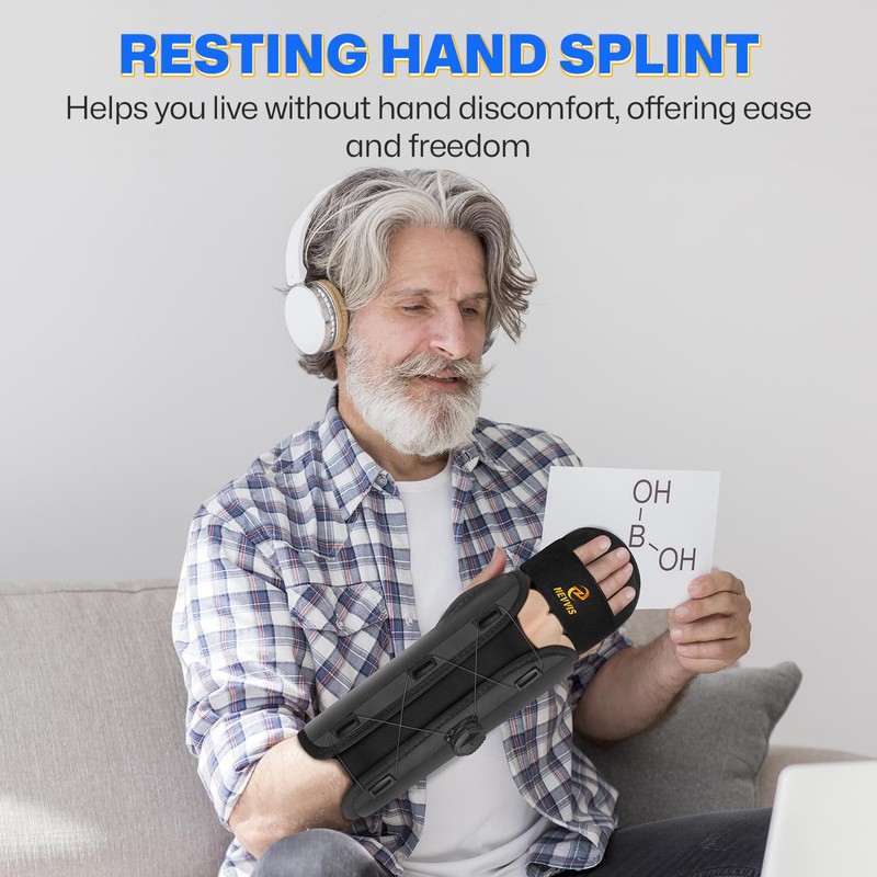 NEVVIS Resting Hand Splint with Adjustable Knob, Carpal Tunnel Wrist Brace Night Support with Removable Wrist Splint, Pain Relief for Stroke Recovery, Tendonitis, Arthritis, etc. Either Hand, S/M,L/XL