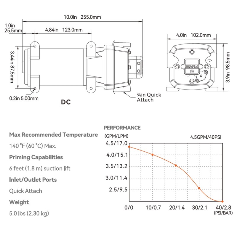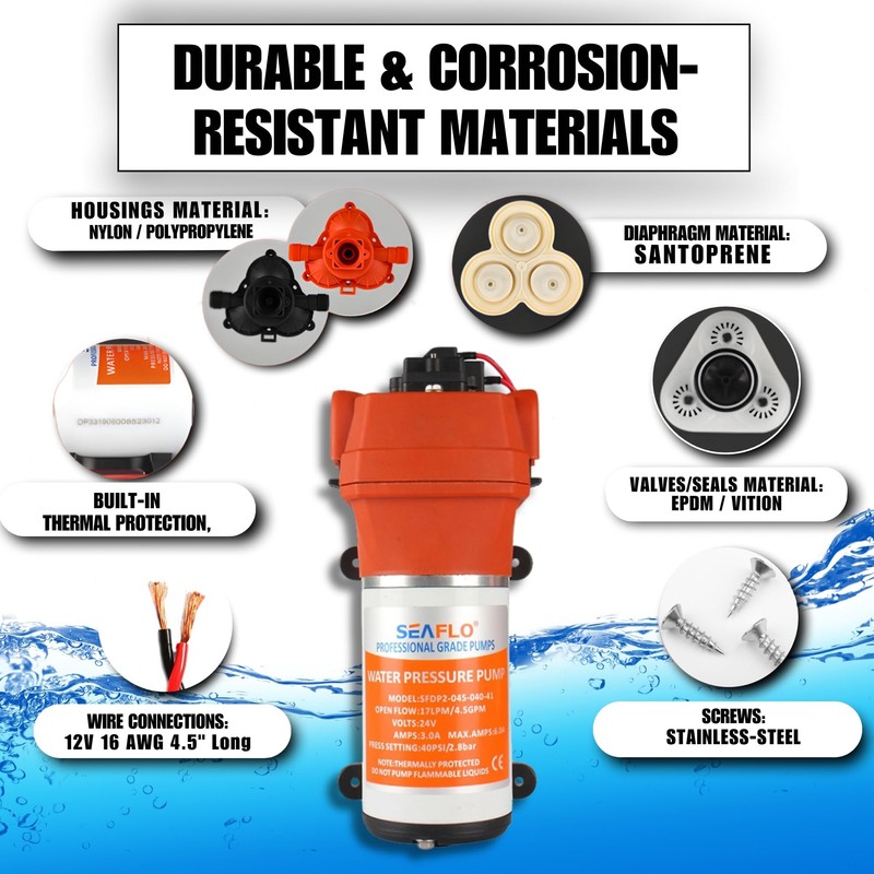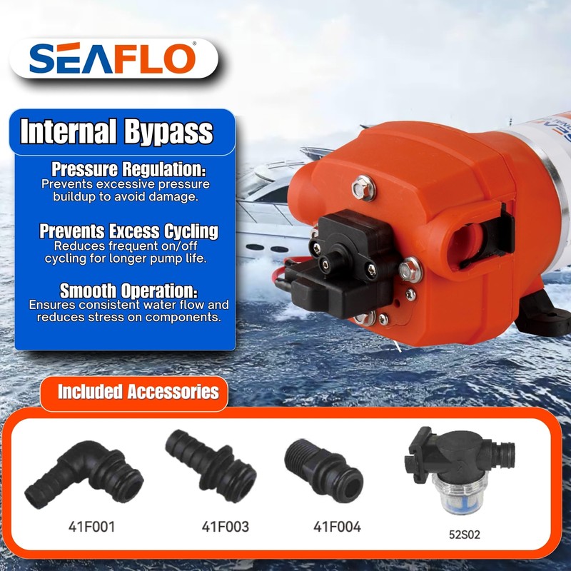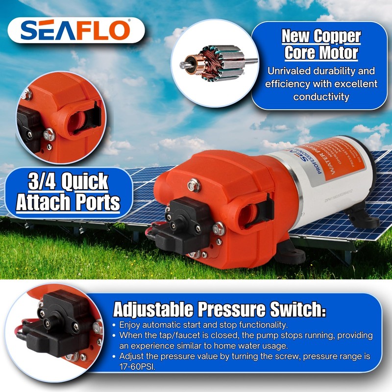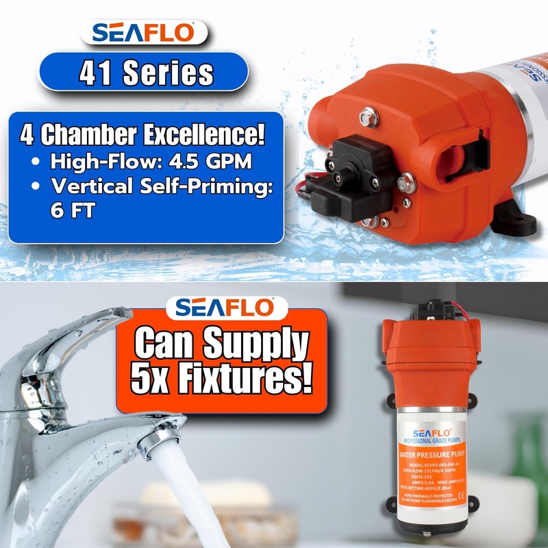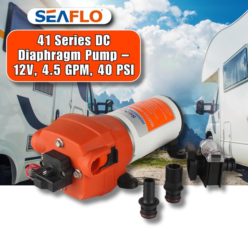 SEAFLO 41 Series Water Pressure Diaphragm Pump - 12V, 4.5 GPM, 40 PSI, Self Priming, Smart Pressure Switch, UL & CSA Certified, for RV, Caravan, Off-Grid, Marine, and Industrial Use - 4 Year Warranty!