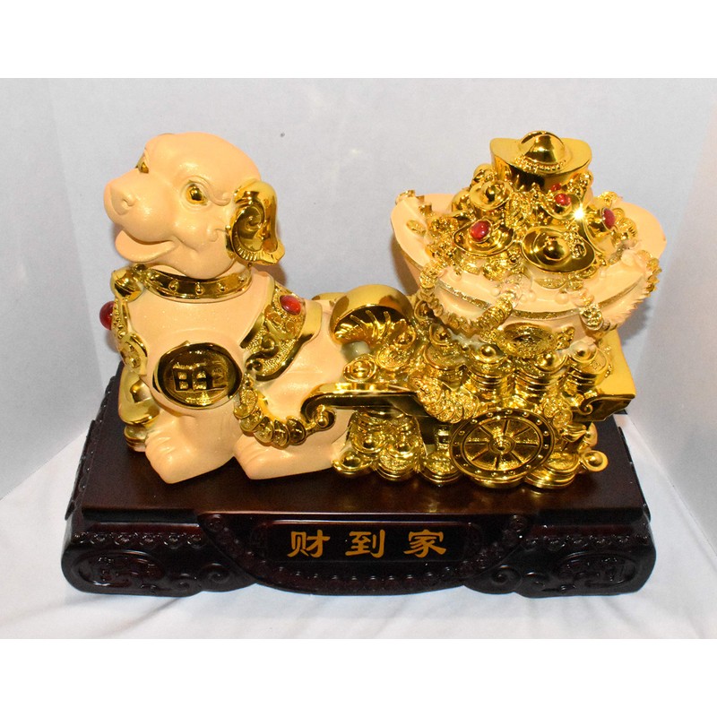 - This is a Beautiful Oriental Zodiac Golden Dog with Pulling WagonFilled ith Ingots, Coins and Jewels Statue