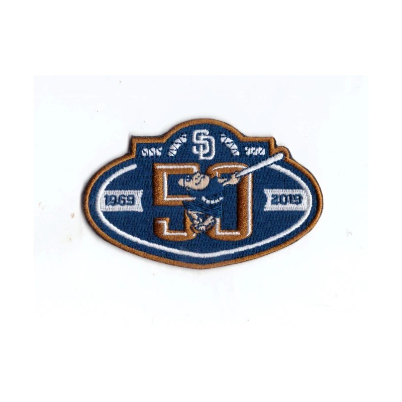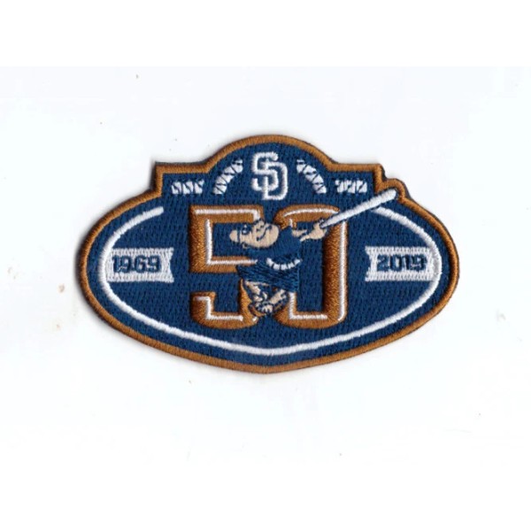 New 2 1/8 x 3 1/2" San Diego Padres 50 Seasons Iron on Patch Free Ship