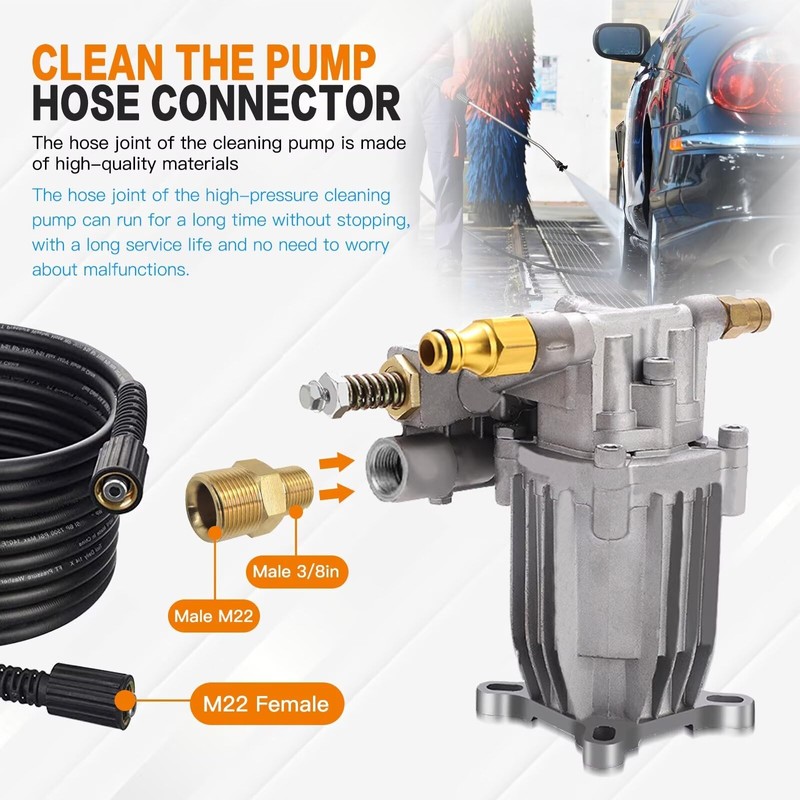 High pressure hose with M22 14mm female thread can connect to the pressure washing pump, get it back to work.