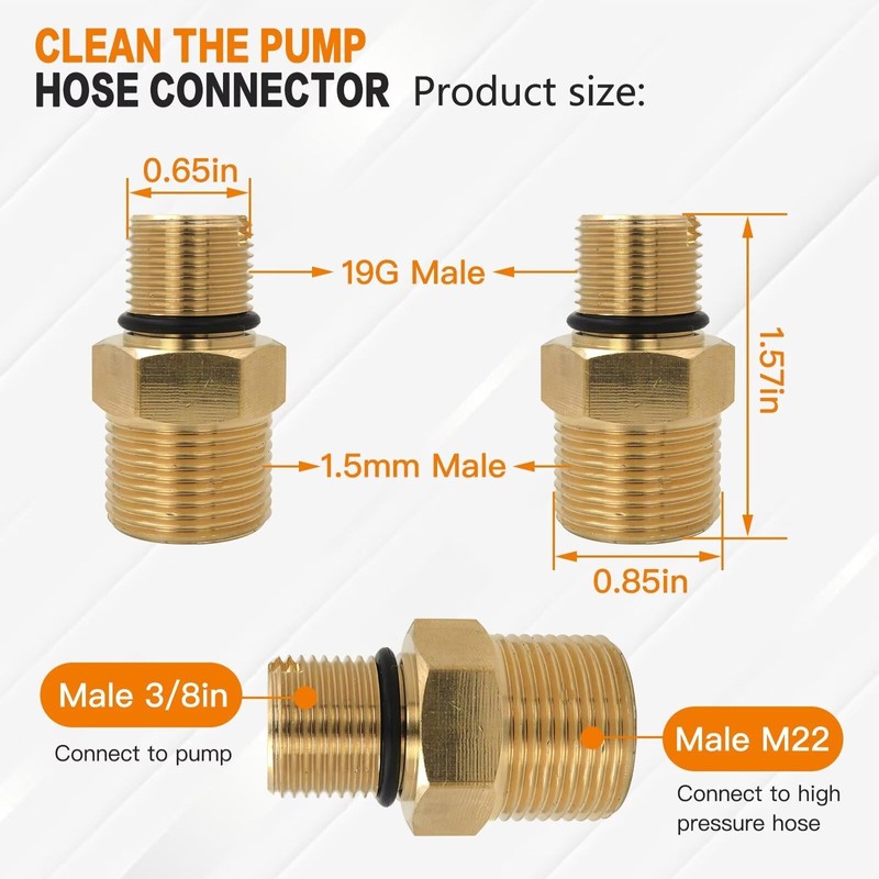 High pressure hose with M22 14mm female thread can connect to the pressure washing pump, get it back to work.