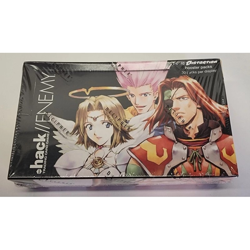 You will receive 1x Booster Box of Dot Hack Enemy Distortion Base Set Trading Cards. This Booster Box contains 30 Packs. Each pack contains 11 randomly inserted cards. This Booster Box is Sealed by the manufacturer.