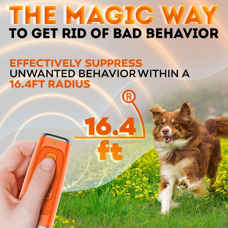 - Anti barking device: Ultrasonic Dog Trainer is a great device for Dog Training and Dog Bark Control. Ultrasonic frequency (25 KHZ) has a certain effect on dogs and helps you correct their behavior.