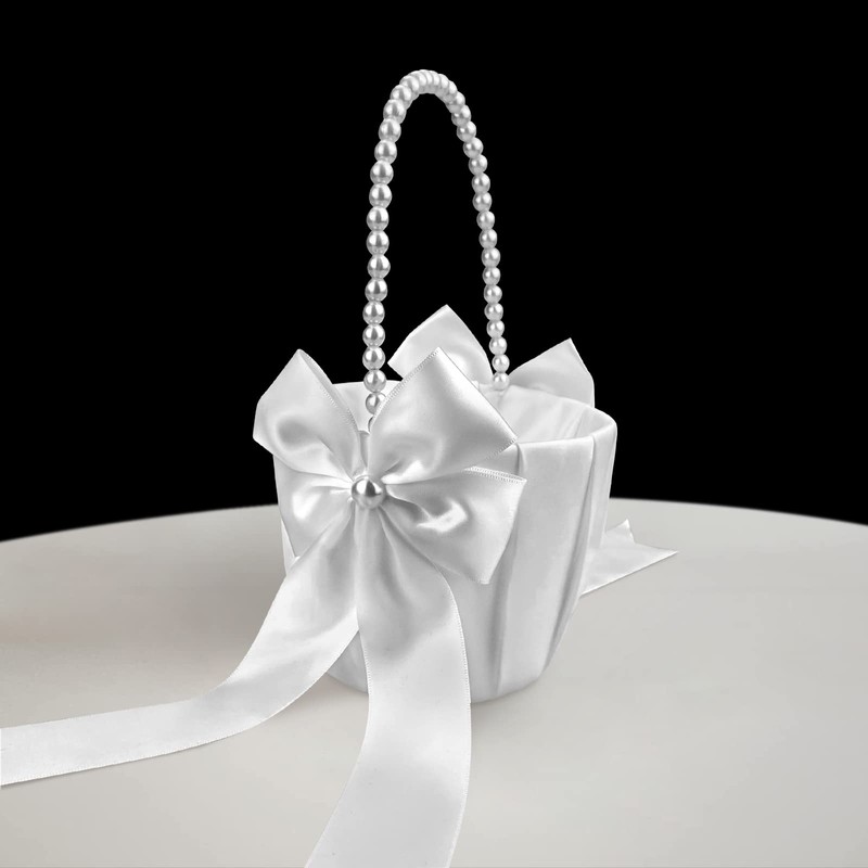 - ◀This flower girl basket with bows will carry more than just the traditional rose petals.Suitable size for holding flowers or rose petals, Laying a romantic royal walkway for your wedding.