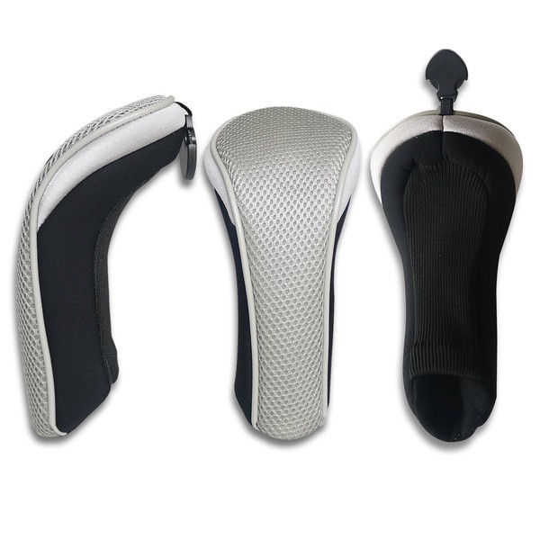 New 3 Pack Golf Hybrid Club Head Covers Interchangeable No. Tag Black & Gray
