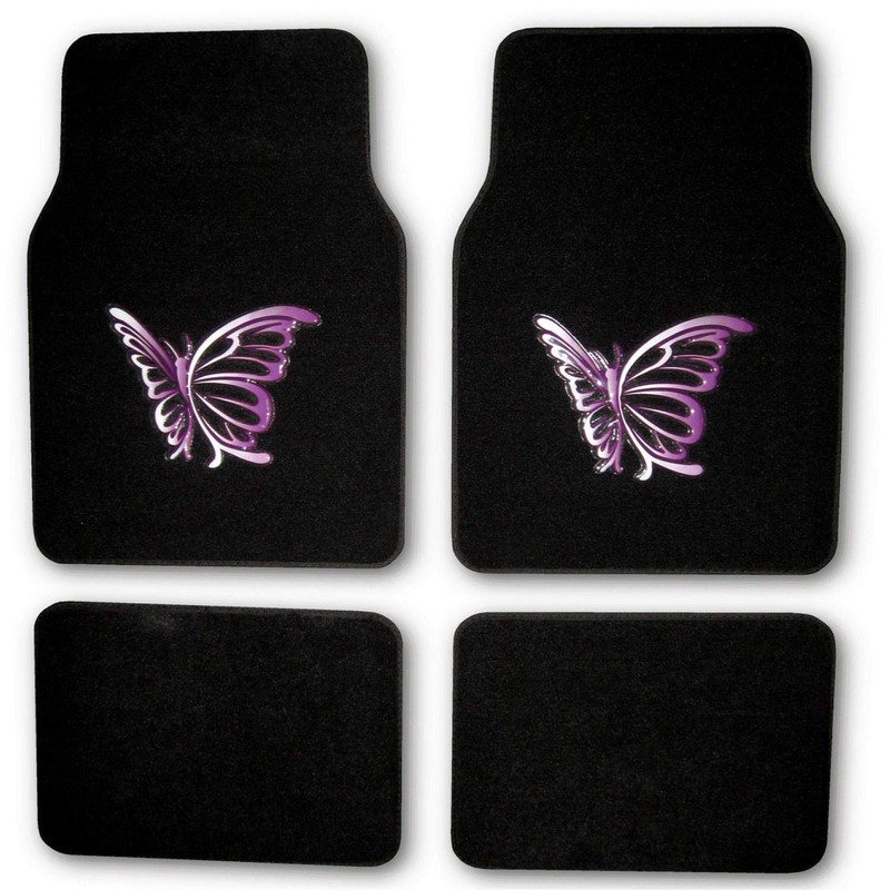 New 4 Pc Heavy Duty Black Butterfly Carpet Floor Universal Mats 27.5" x 17.5" (Butterfly)