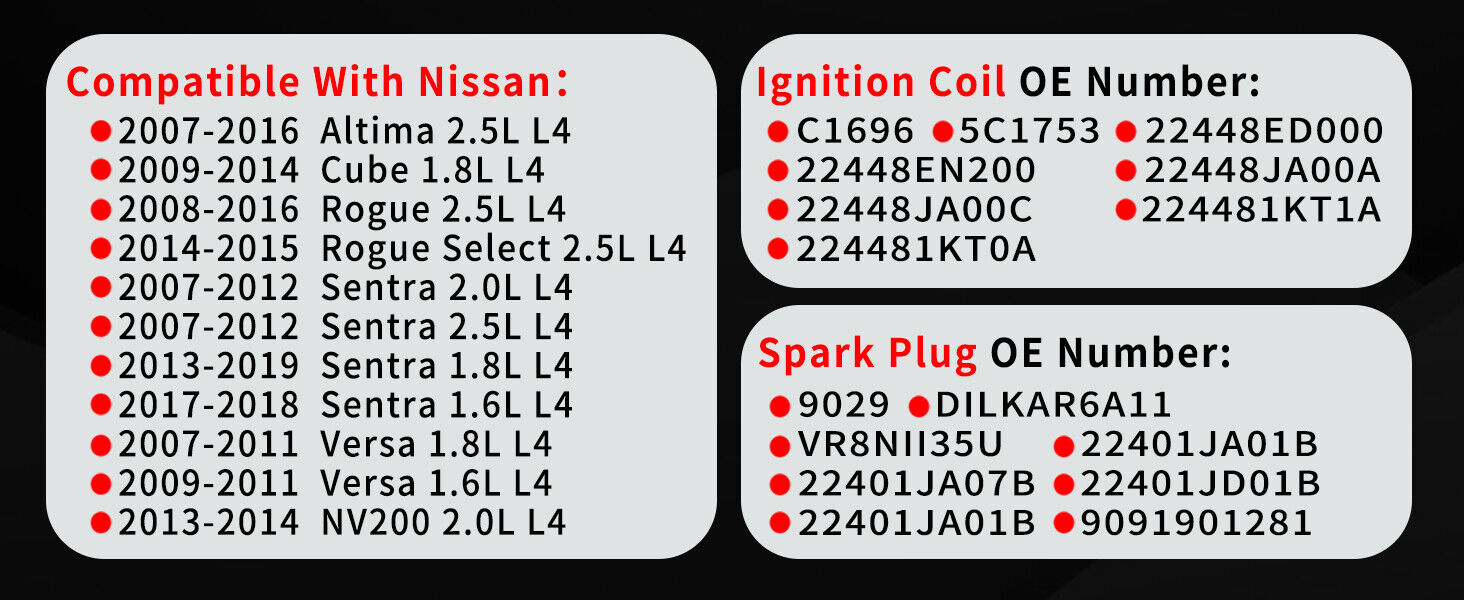 NEW 4 UF549 For Nissan Altima Sentra rogue versa Spark Plugs and Ignition Coil packs