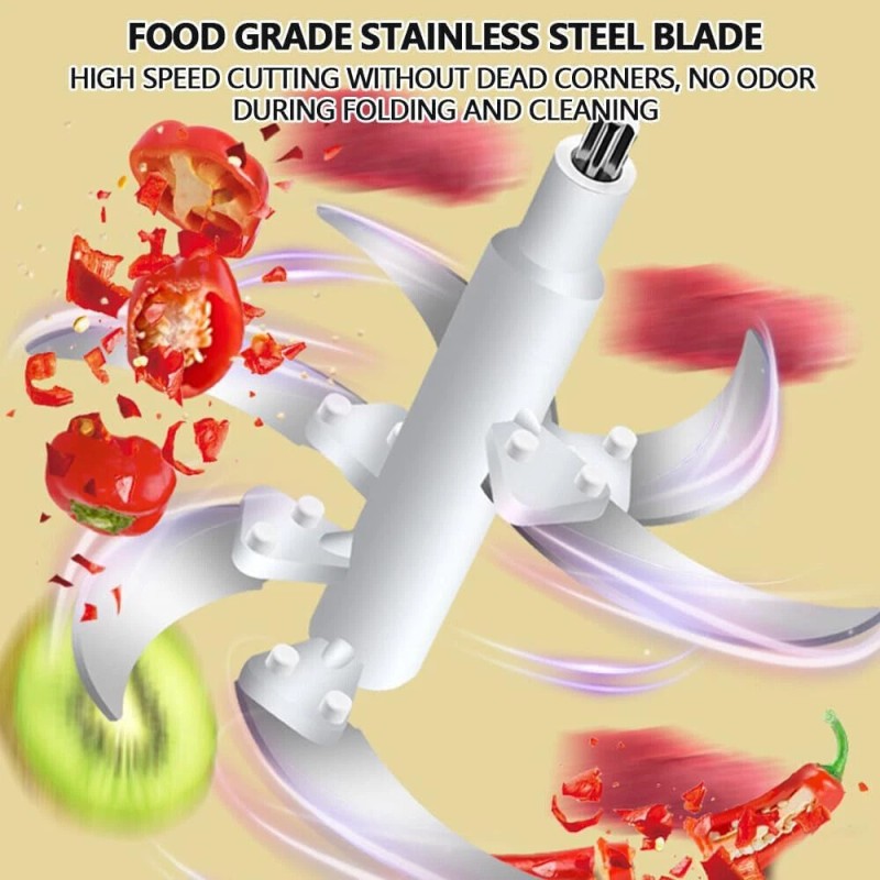 4. Switch on the machine: Put the ingredients to be stirred into the meat grinder, cover the lid, install the motor part, press the body of the meat grinder with one hand to avoid too much power and sliding of the body when the meat grinder starts. Press the on/off button with one hand and the meat grinder starts to run. Please do not put in too much food, the mixing process will not be speeded up as a result.
