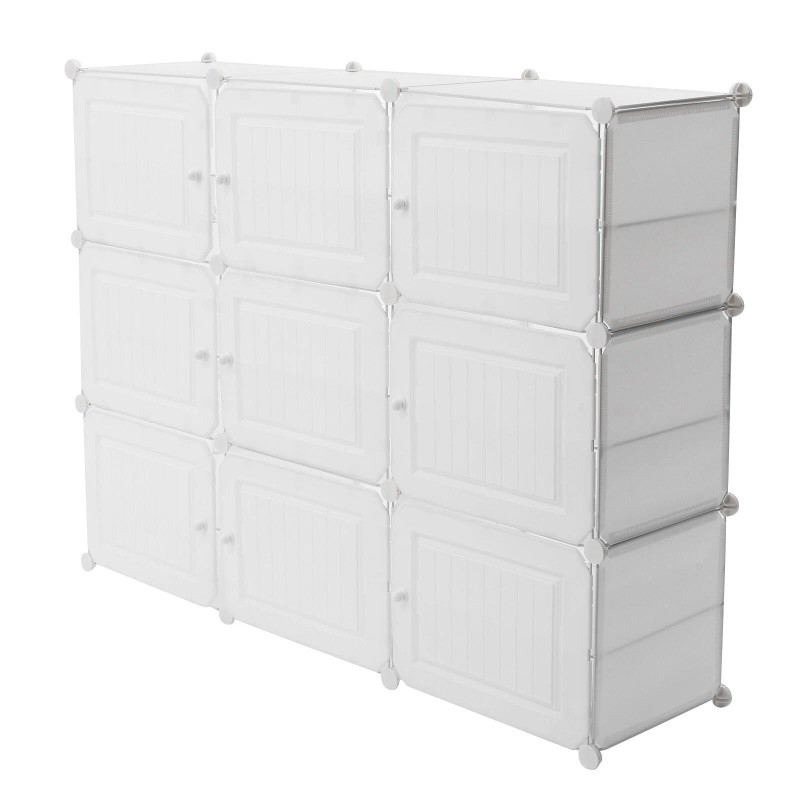 Portable Shoe Rack, 36 Pair DIY Shoe Storage Shelf Organizer, Plastic Shoe Organizers for Entryway, Shoe Cabinet with Doors, White, 9 Door