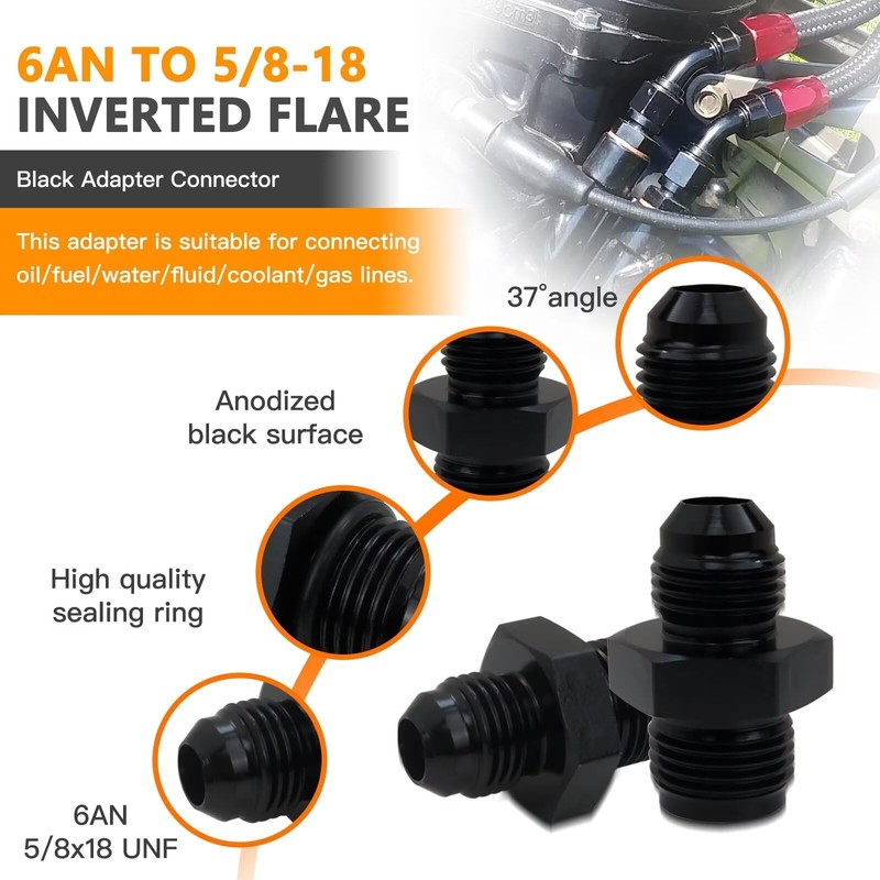 New -6AN 6AN Male Flare to 5/8"-18 Inverted Flare Adapter Fitting Fit for Tru Cooler 40K, Pack of 2, Black