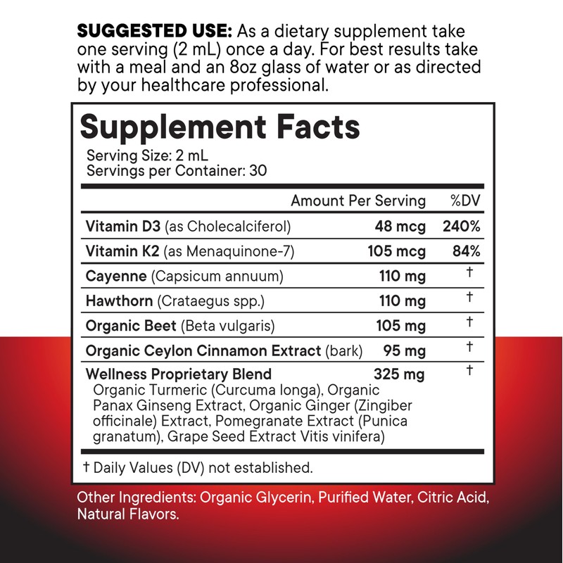 - Trusted Quality - Made in the USA with Non-GMO ingredients, these liquid drops undergo third-party testing on every batch for your safety. Featuring cayenne pepper supplements, hawthorn berry capsules in liquid drop, organic beets, turmeric liquid supplement, vitamin D3 K2, ginseng root, Ceylon cinnamon supplement, and berberine liquid drops, this comprehensive blend brings together high-quality botanicals for everyday wellness.