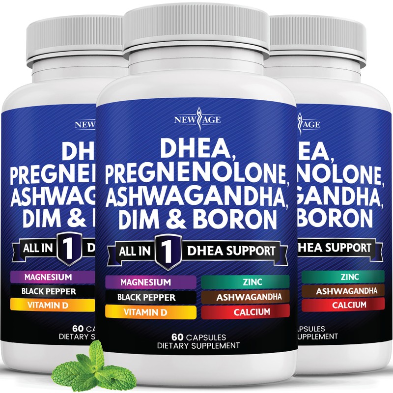 NEW AGE DHEA Supplement - Pregnenolone for Men & Women with DIM, Ashwagandha, Boron, Calcium, Magnesium, Zinc, Vitamin D3 5000iu - Support Capsules - 180 Count