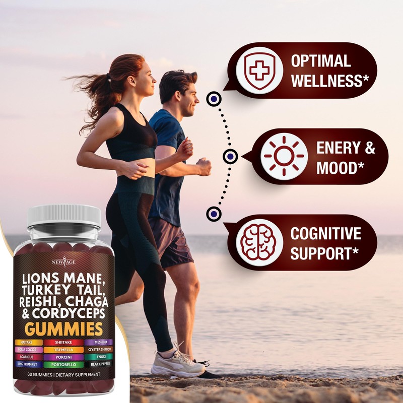 NEW AGE NEW AGE Mushroom Lion's Mane Supplement Gummies - Comprehensive Mushroom Supplement for Cognitive & Immune Support, with Reishi, Cordyceps - 120 Count