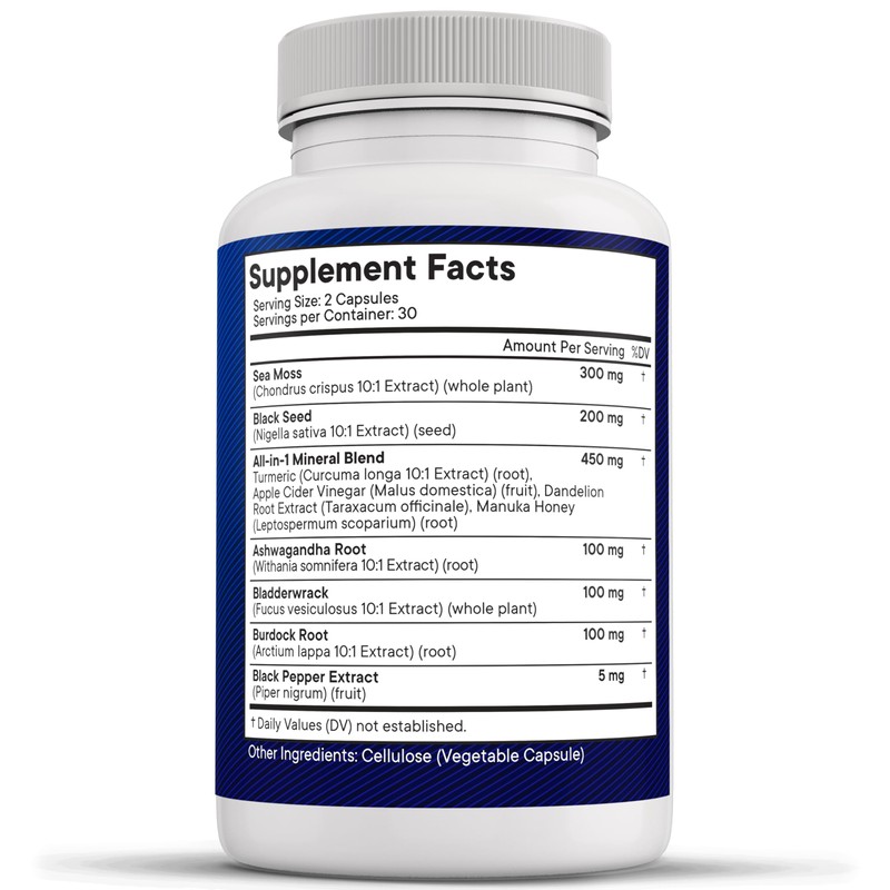 - New Age Sea Moss - All in 1 is not just an sea moss supplement. Our complete complex also contains black cumin seed oil, burdock and bladderwrack
