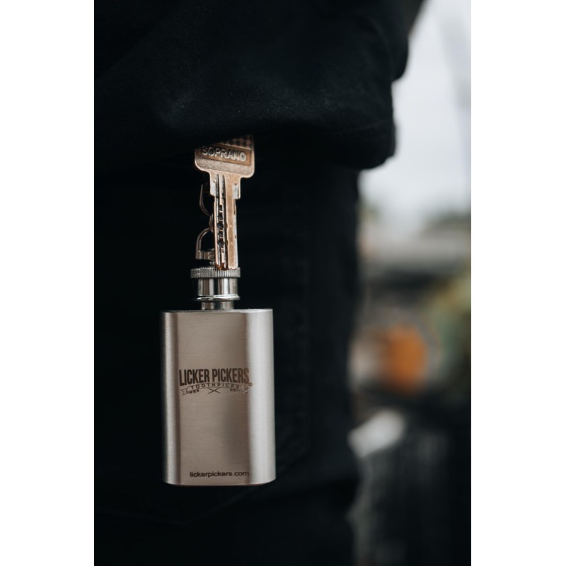 Licker Pickers Old Fashioned Flavored Toothpicks - 25 White Birch Aged in Premium Spirits. Includes 2oz Flask