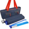 New! - American Mah Jongg Set by Linda Li - 166 Premium White Tiles, 4 All-in-One Rack/Pushers, Denim Blue Soft Bag - Stylish Full Size Complete Mahjong Set