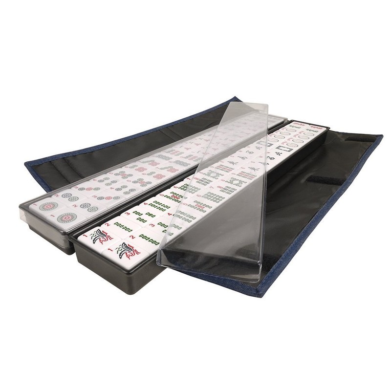 The stunning sapphire blue all-in-one pusher and tile rack are a breeze to use and very easy to put away after game play. A second matching denim wrapper keeps your all-in-one pushers organized and protected while packed away.