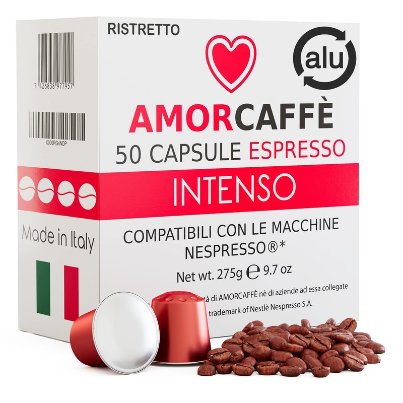 NEW Amorcaffe 50 • Recyclable • Aluminium • Compatible Nespresso Capsules Coffee Pods - Ristretto Intenso