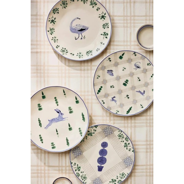 - 1. A collection by Lexington, featuring hand-painted and glazed stoneware dishes with whimsical and naturescape designs, incorporating wildlife motifs for aesthetic appeal.