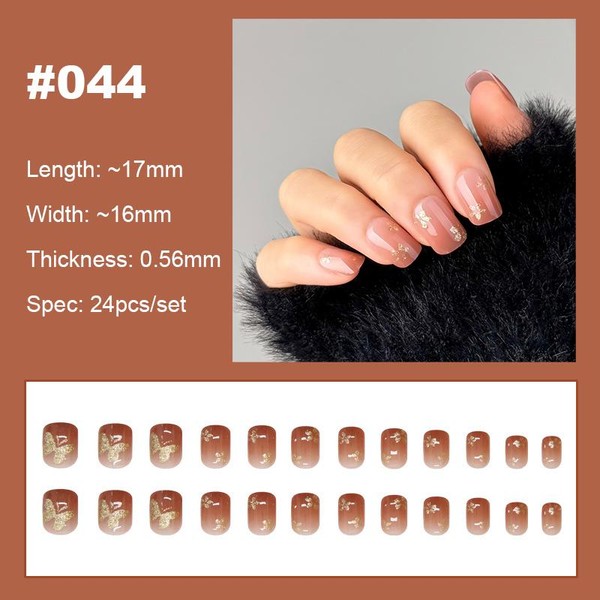 【NEW ARRIVALS!】 Press on Nails French Tip Bling Coffin Short Almond Fake Nails with Designs Glue on Nails Long Glossy Gradient Medium False Nails Reusable Full Cover Thick Nail Acrylic Stick on Nails for Women Girls 24 Pcs:_044