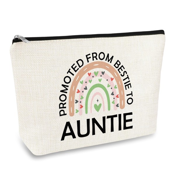 New Auntie Gift Bestie to Auntie Makeup Bag Pregnancy Announcements Gift New Aunt Gifts for Sister Bestie Cosmetic Bag Birthday Baby Shower Baby Reveal Gifts for Aunt Travel Toiletry Pouch