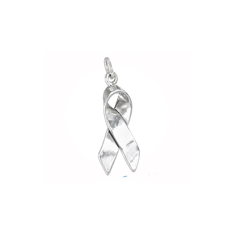 New Awareness Remembrance Ribbon 3D 925 Solid Sterling Silver Charm Pendant for Everyday Wear and Any Outfit ISLANL00804