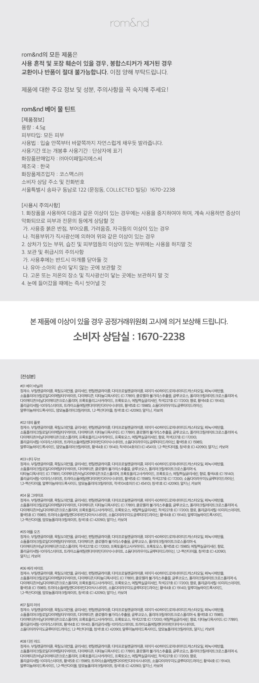 [NEW] Bare Water Tint 8colors / [NEW] 베어 물 틴트 8colors