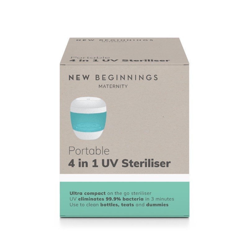 The New Beginnings Portable 4-in-1 UV Steriliser is a must-have for busy mums on the go. This convenient and compact UV Steriliser enables you to effectively eradicate 99.9% of germs and bacteria from bottles, teats, dummies, and sippy cups anytime, anywhere.
