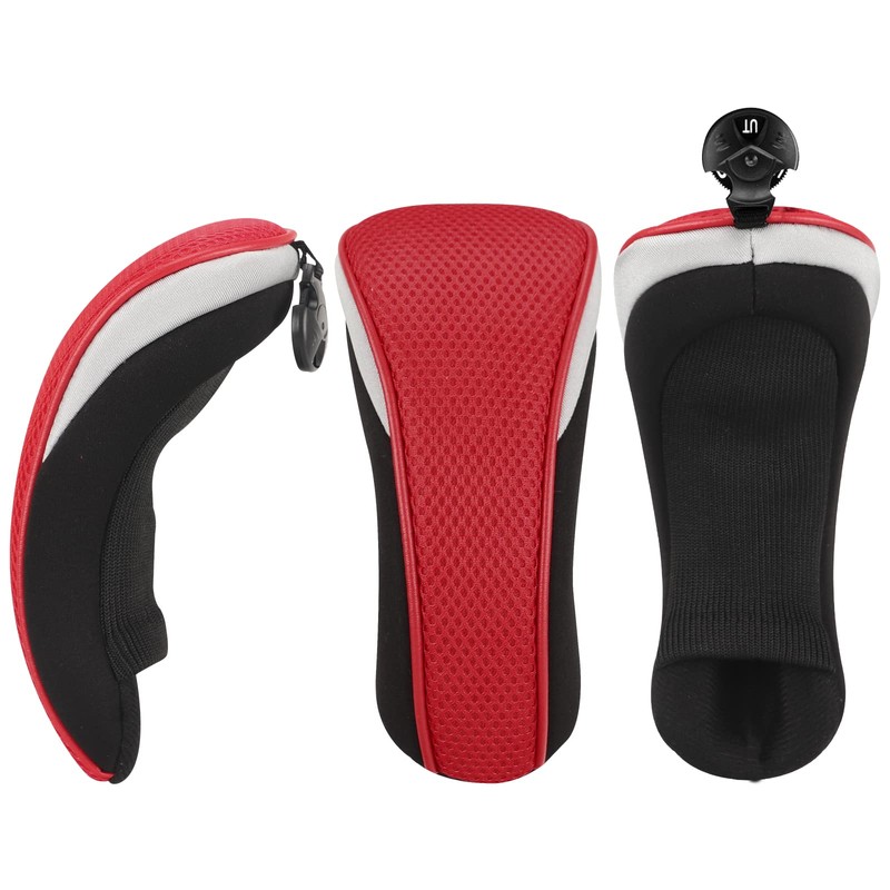 New Black Red 3 Pack Golf Hybrid Headcover Club Head Covers with Interchangeable No. Tag