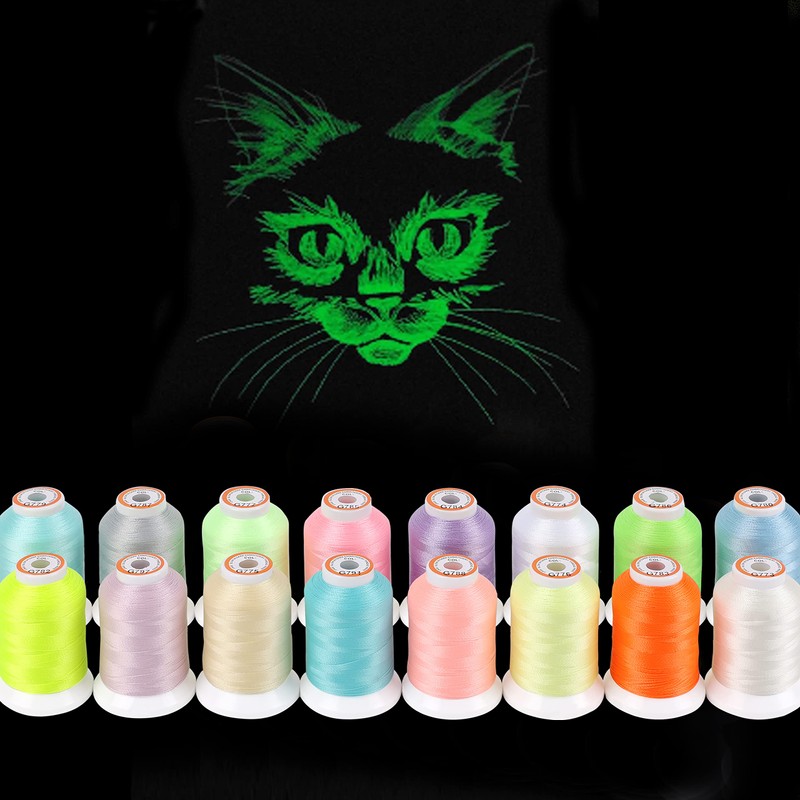 - ★ How to Get the Best Glowing Effect: 1, It is important to “charge” the thread by keeping the embroidery project in the light. 2, Usually a project with denser stitches or multiple outline stitches will have a better glow effect. 3, Using the glow in dark thread on some dark coloured fabric will bring a stunning glowing effect. 4. Lubricating the thread only with a non-staining silicone spray or sewers aid.