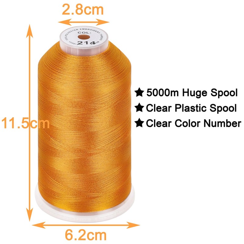 - ★★ Ideal Weight and Huge Spool - Each Spool is 40 W.T. (120D/2) in thickness and 5000M (5500Y) in length, which makes these spools of polyester embroidery machine thread ideal for All Embroidery Machines including Home based, Semi-industrial, Industrial and Commercial Embroidery Machines. (Note: home based machine users MUST use an upright thread stand/holder to help feeding our 5000m embroidery threads to your machine properly!)