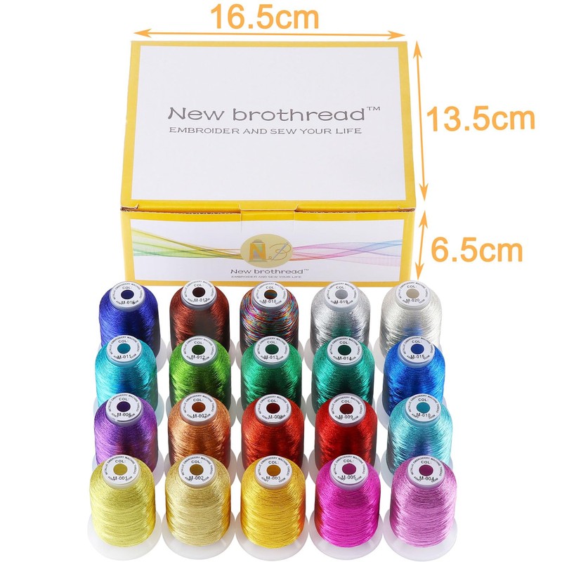 New brothread 20 Assorted Colors Metallic Embroidery Machine Thread Kit 500M (550Y) Each Spool for Computerized Embroidery and Decorative Sewing