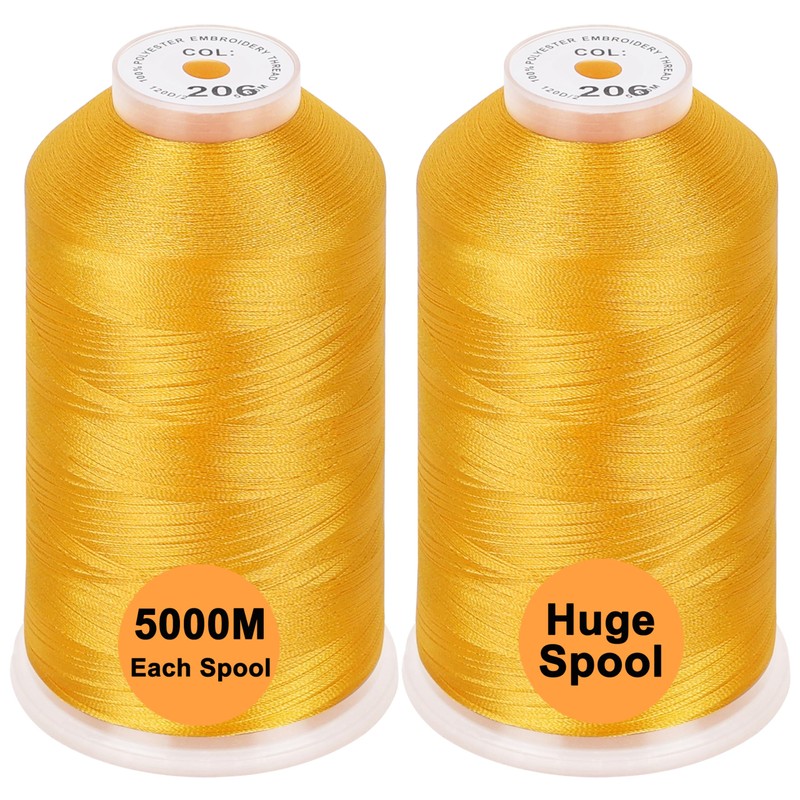 New brothread Set of 2 Polyester Machine Embroidery Thread Huge Spool 5000 m for All Embroidery Machines - Harvest Gold