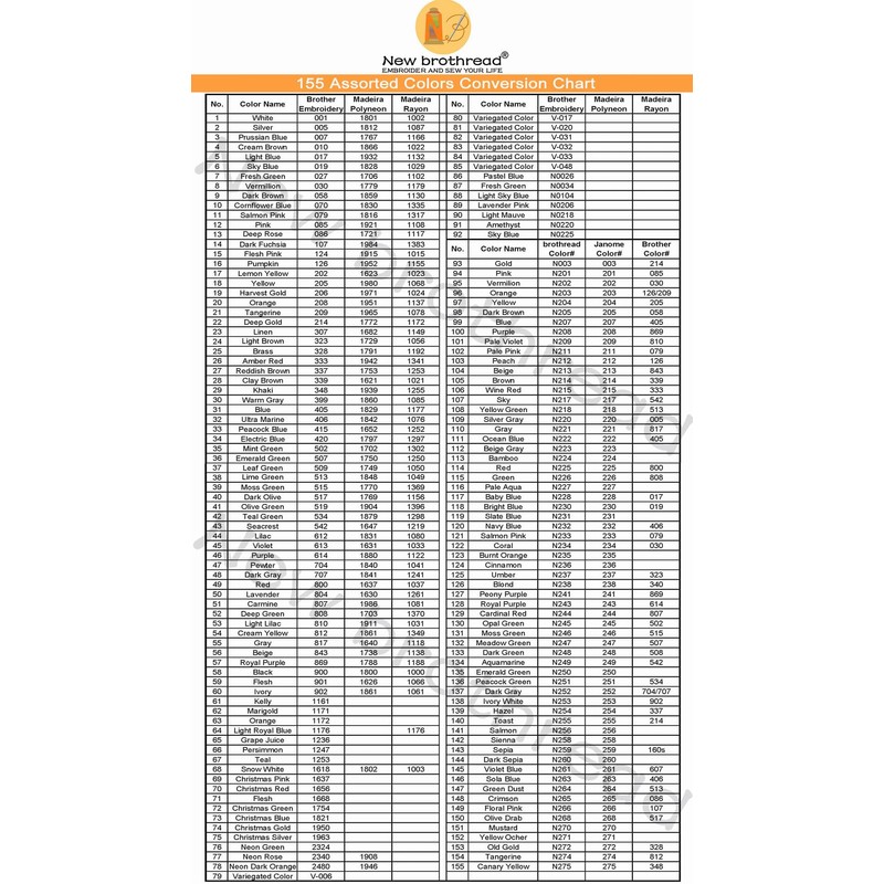 - ★★ Color Conversion is available. Most of these colors can be converted between Brother Colors and Madeira colors, you can get correct colors for your embroidery projects according to our New brothread color chart in pictures No. 3 and No. 4.
