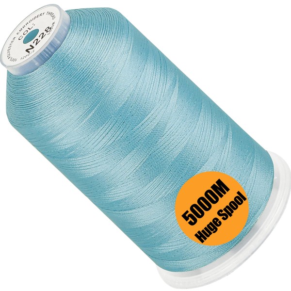 New brothread - Single Huge Spool 5000M Each Polyester Embroidery Machine Thread 40WT for Commercial and Domestic Machines - Baby Blue(Janome Color)