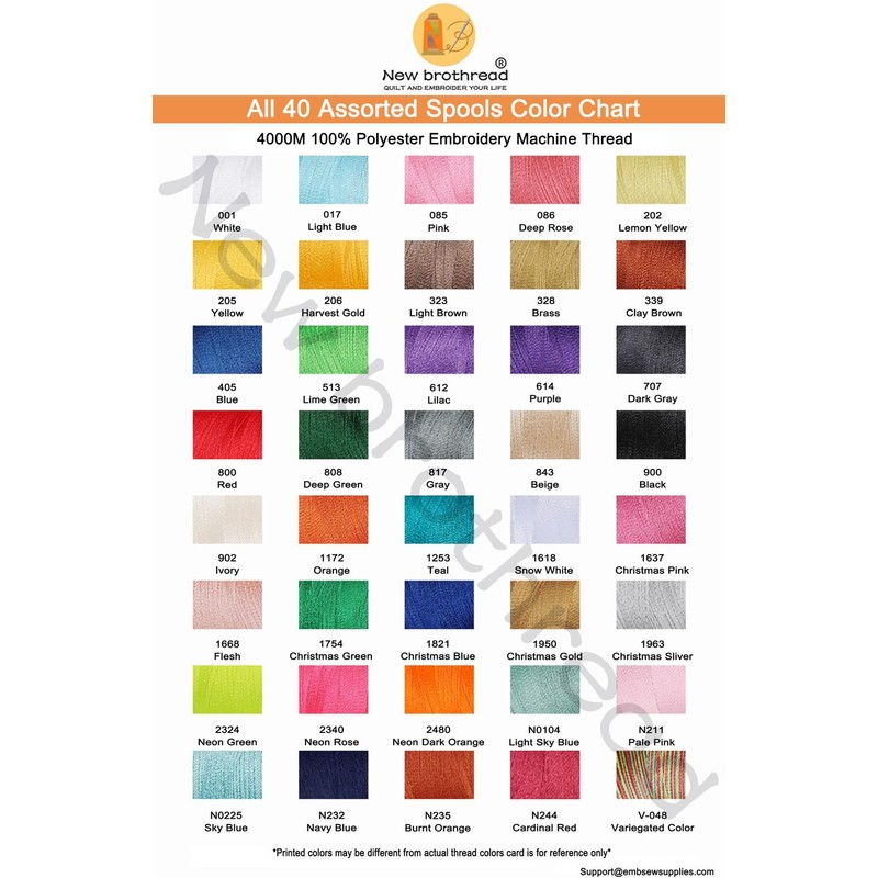 New brothreads - All 40 Assorted Colors of Huge Spool 4000M Polyester Embroidery Machine Thread for Commercial and Domestic Embroidery Machines
