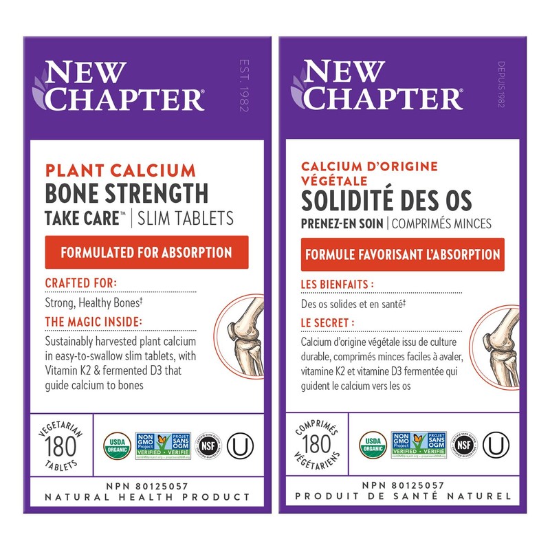 New Chapter Calcium Supplement - Bone Strength Organic Red Marine Algae Calcium - with Magnesium, Vitamin D3+K2, 70+ Trace Minerals for Bone Health, Gluten Free, Easy to Swallow - 180 Slim Tablets
