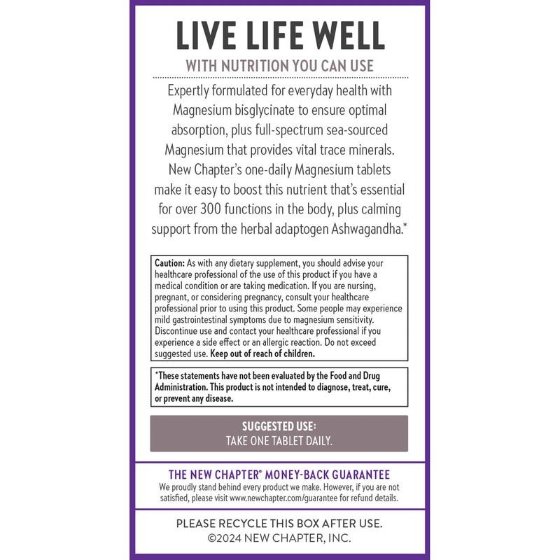 New Chapter Magnesium + Ashwagandha Supplement | 325 mg with Magnesium Glycinate, 2.5x Absorption, Muscle Recovery, Heart, Bone Health & Relaxation:_30 Count - 1 Month Supply