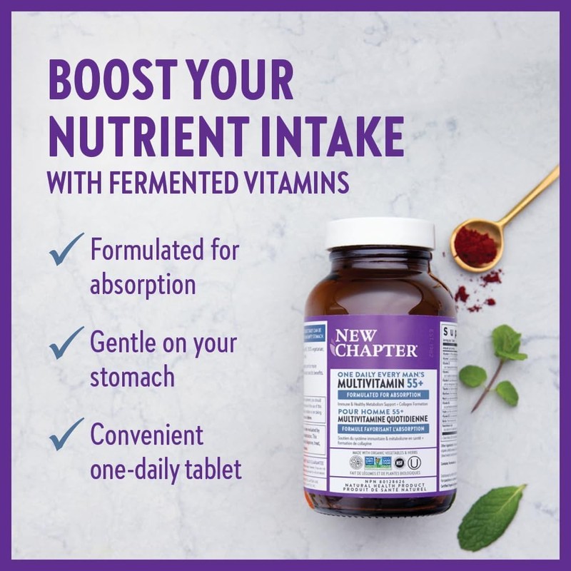 New Chapter New Chapter Men's Multivitamin 50 Plus for Brain, Heart, Digestive, Prostate & Immune Support with 20+ Nutrients + Astaxanthin - Every Man's One Daily 55+, Gentle on The Stomach - 30 ct