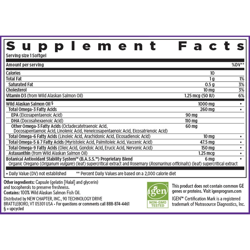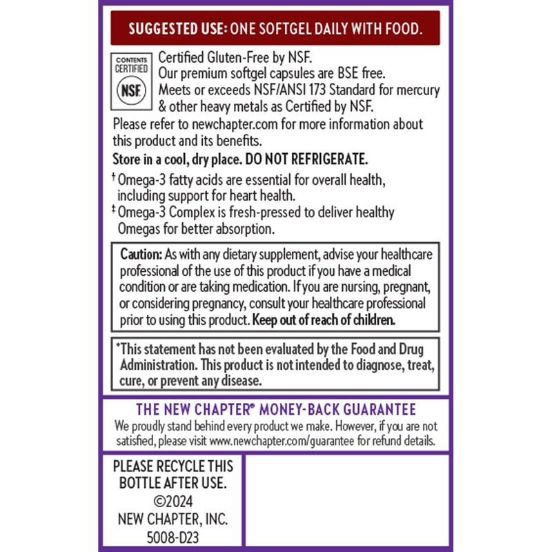 New Chapter New Chapter Omega-3 Complex, Fish Oil Supplement Wild Alaskan Salmon for Heart, Brain, Eye, Joint & Skin Health Support - 30 Count