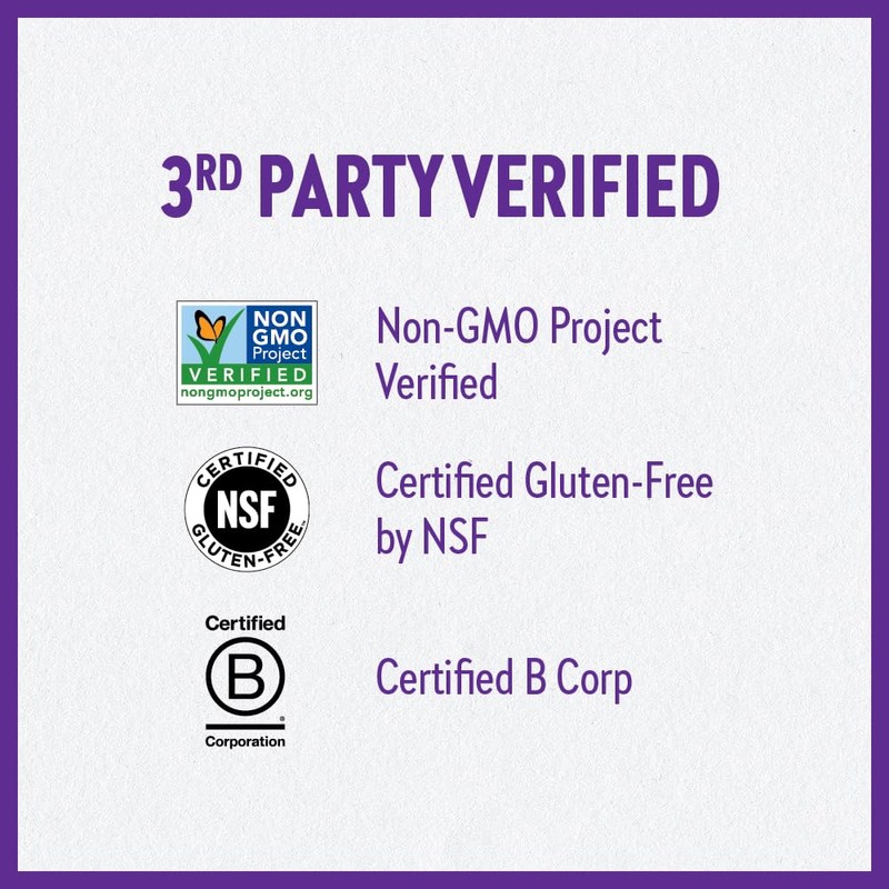 - 100% Vegetarian, Non-GMO Project Verified, Certified Gluten- Free by NSF, No Synthetic Fillers, No Artificial Preservatives, No Artificial Flavors or Colors