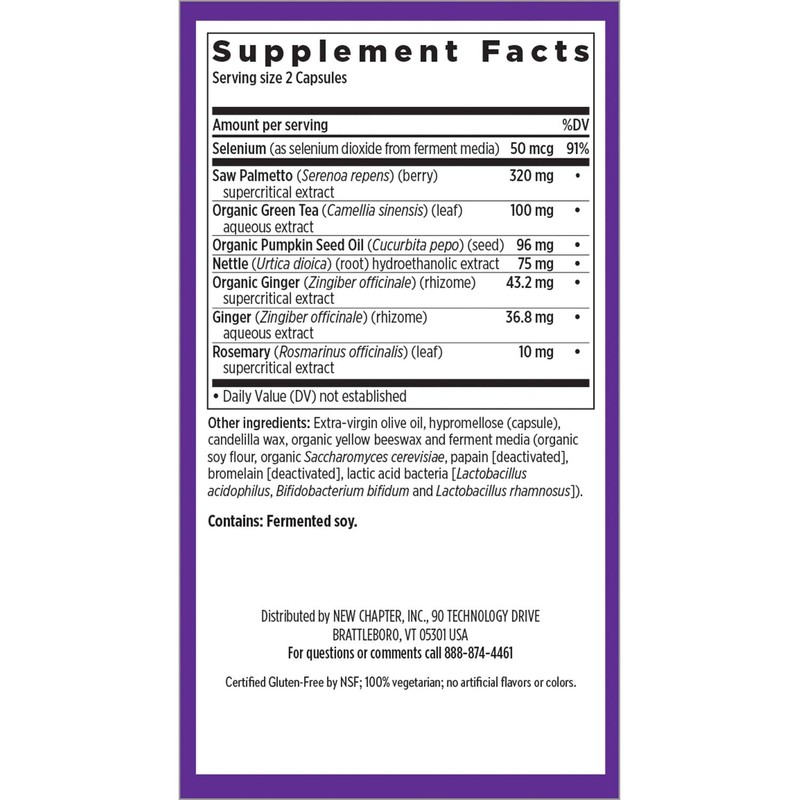 Prostate 5LX? is a daily prostate supplement expertly formulated to support normal urine flow and overall prostate health.* It combines multiple prostate-supportive plant nutrients from Nettle, clinical- strength Saw Palmetto, Pumpkin Seed, and other potent herbs.* New Chapter's premier prostate supplement is also rich in fermented Selenium, a key mineral for men. The benefits of New Chapter's Prostate 5LX add up to a comprehensive men's formula that supports your quality of lifeday and night.* *These statements have not been evaluated by the Food and Drug Administration. This product is not intended to diagnose, treat, cure, or prevent any disease